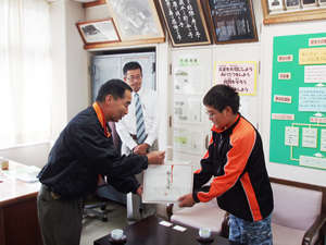 南郷温泉より南郷中校へと目録と贈呈が執り行われました。